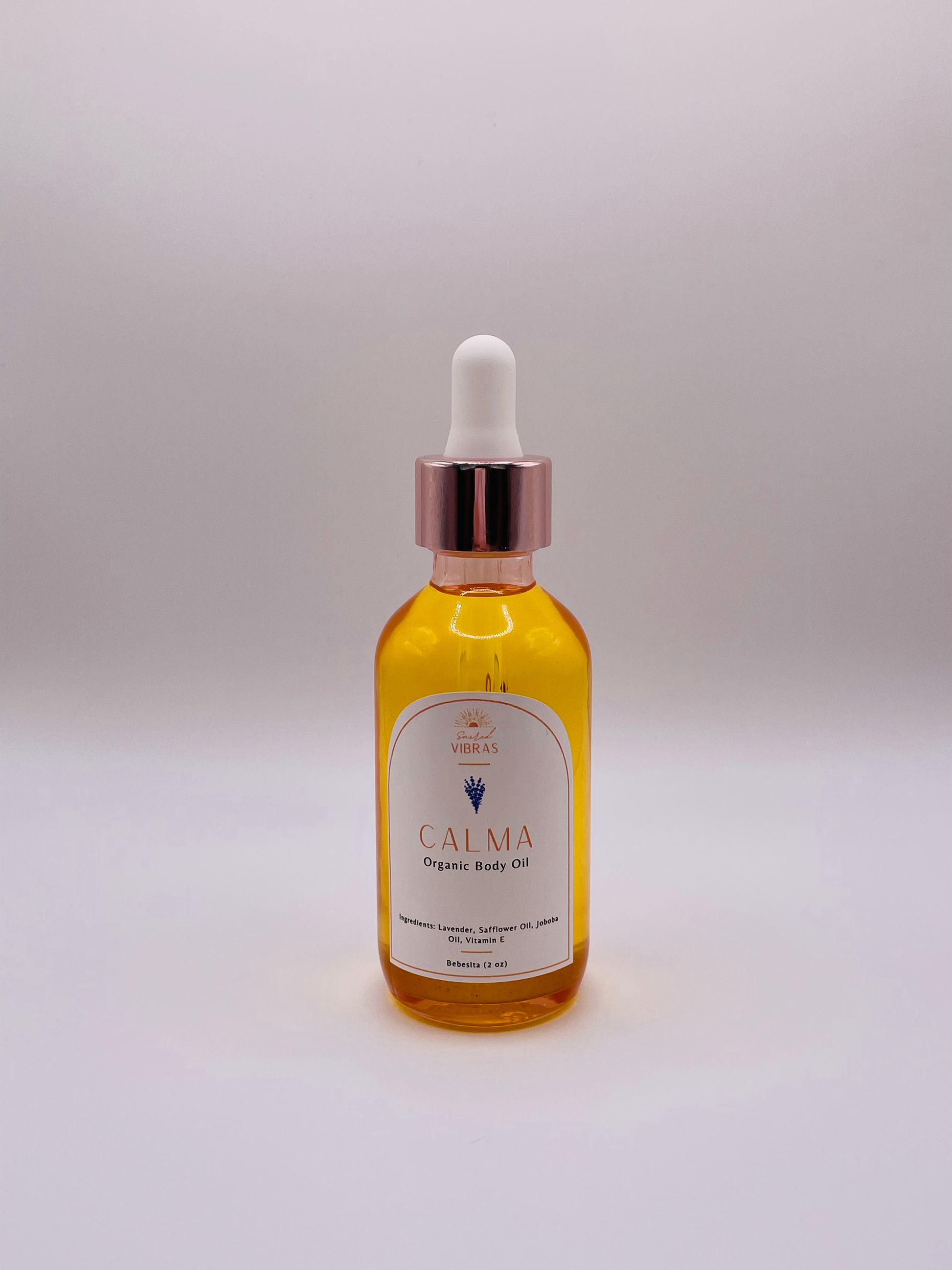 We call her CALMA - an organic lavender body oil for all your divine needs. She gives the perfect amount of hydration without staining your fave clothes, with oily residue. The soft lavender scent can be grounding and soothe your senses into relaxation. A little goes a long way!