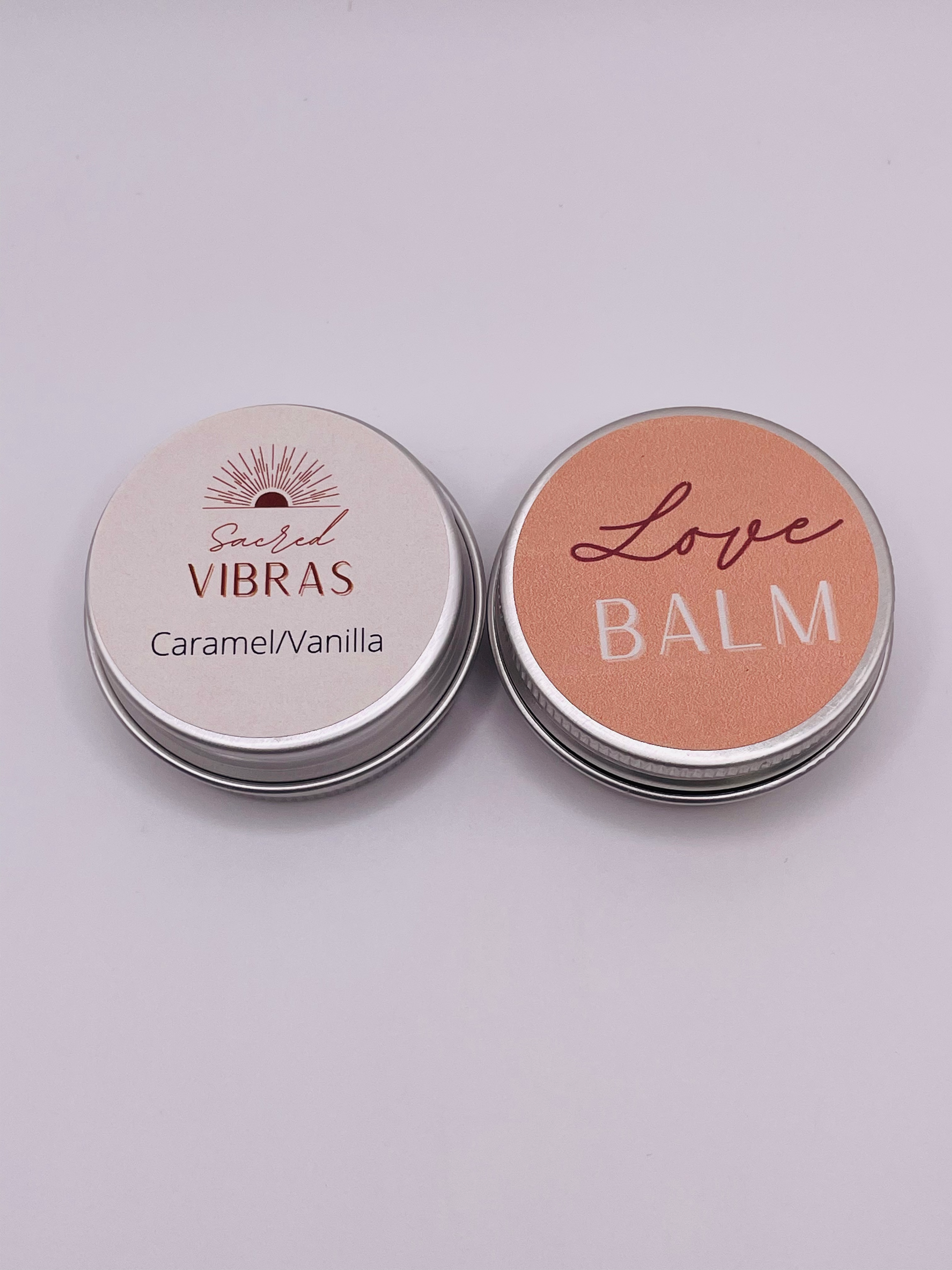 LOVE BALM - organic and made with love, this soul-soothing balm is a combination of Vanilla and Caramel taste that moisturizes and hydrates instantly. It brings sweetness and a comfort-feeling straight to your lips!